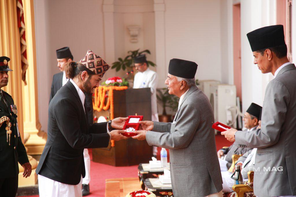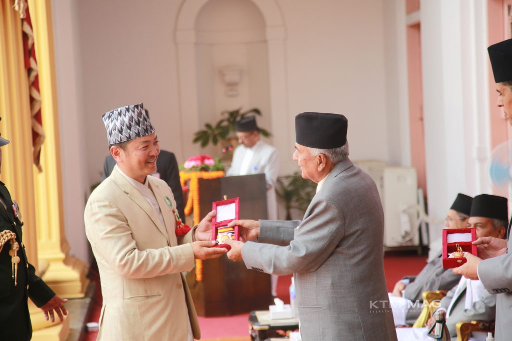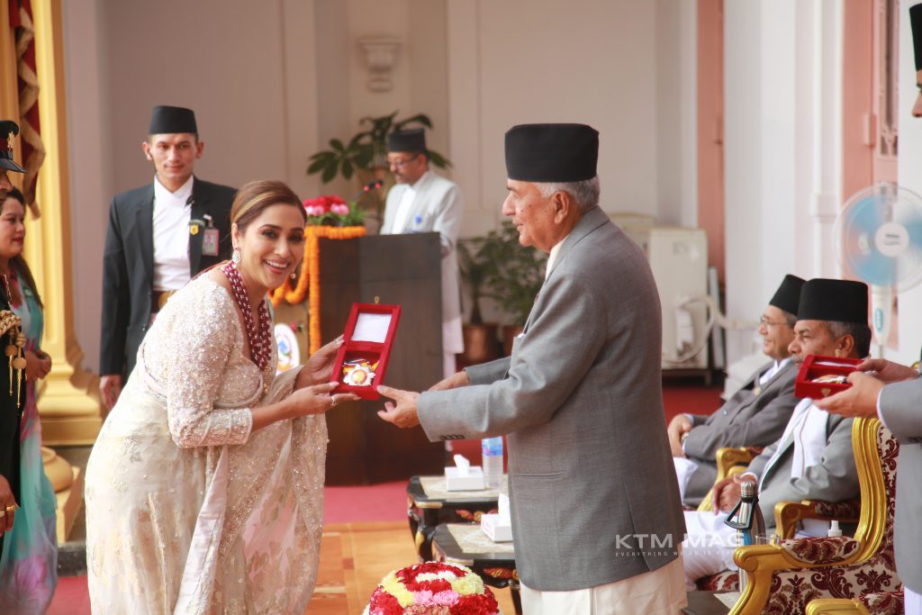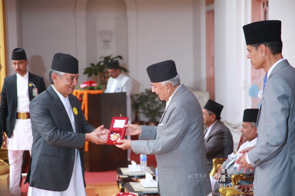 President Ramchandra Paudel has awarded jewels to people from various fields. President Paudel presented the jewelry at a special ceremony held at presidential residence Sheetal Niwas. Bibhushan(Ornament), which was announced by the Ministry of Home Affairs on the occasion of last Constitution Day, was given on Friday on the occasion of New Year. Vice President Ram Sahay Prasad Yadav, Prime Minister Pushpa Kamal Dahal Prachanda, Speaker Devraj Ghimire, Speaker of the National Assembly Ganesh Prasad Timilsina and others participated in the award ceremony. 998 persons in various professional fields were awarded Bibhushan. In which artists have also been enthralled. President Ramchandra Paudel presented Janasevashri Pancham Category Bibhushan to film actor Pradeep Khadka at the Bibhushan Sushoban ceremony held at the President's Office Maharajganm on Friday.