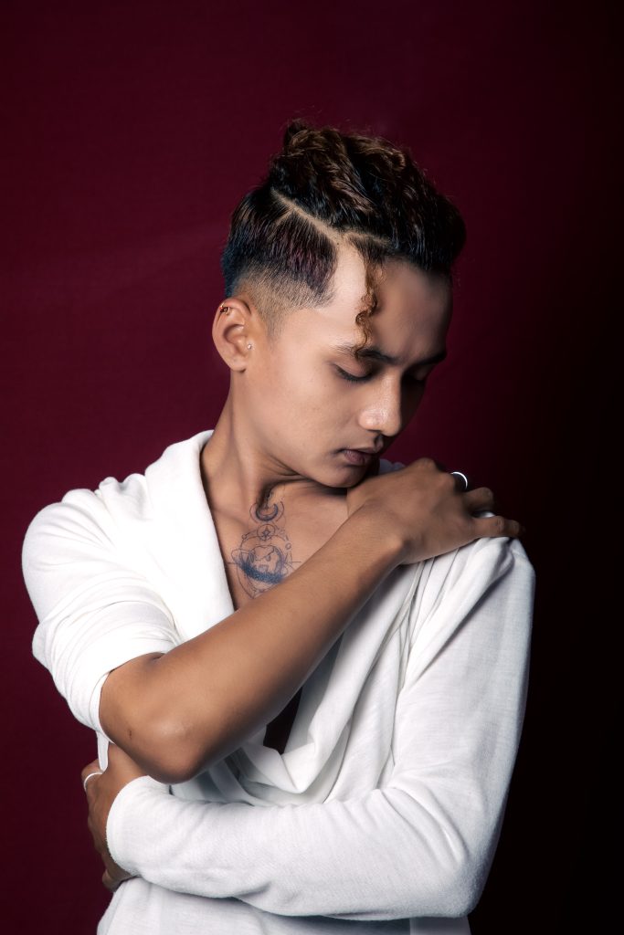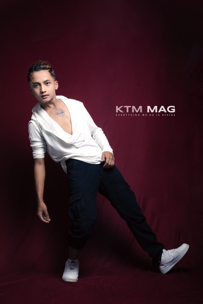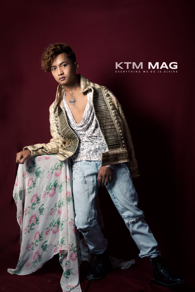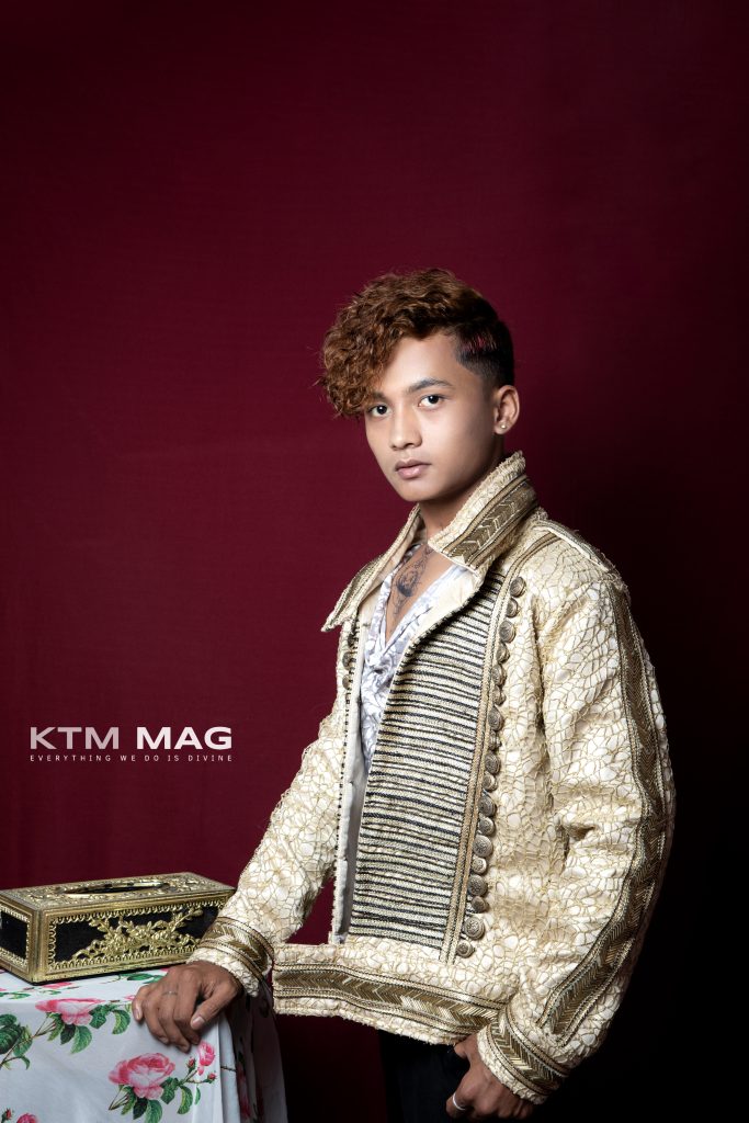 Mandoj Ale, a young model emerging in Nepal’s fashion industry. he is also a competitor of Mero Dance Universe 2023. He has done a photo shoot in a wardrobe designed by Tenzing Bhutia for the weekly fashion photoshoot segment of ktmmag
